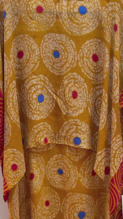 In Eastern philosophy, an Avatar is an incarnation that teaches how to evolve virtues of the past into the present. The Pure Upcycled Silk Avatar Collection is made from vintage pure silk saris, chosen and worn by women in the past to celebrate their lives.If you look very closely, you will see that the silks in this collection show some of the character of their previous incarnations through the appliqués that have been lovingly applied to bring new life to the fabric. This piece is a reminder that we are part of a collective journey to which we all add a little something.