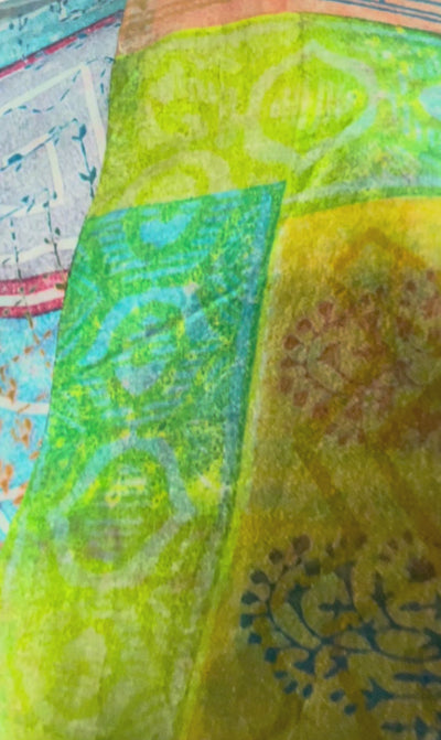 In Eastern philosophy, an Avatar is an incarnation that teaches how to evolve virtues of the past into the present. The Pure Upcycled Silk Avatar Collection is made from vintage pure silk saris, chosen and worn by women in the past to celebrate their lives. If you look very closely, you will see that the silks in this collection show some of the character of their previous incarnations through the appliqués that have been lovingly applied to bring new life to the fabric. This piece is a reminder that we are part of a collective journey to which we all add a little something.