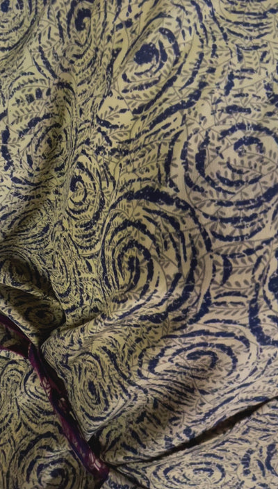 In Eastern philosophy, an Avatar is an incarnation that teaches how to evolve virtues of the past into the present. The Pure Upcycled Silk Avatar Collection is made from vintage pure silk saris, chosen and worn by women in the past to celebrate their lives.If you look very closely, you will see that the silks in this collection show some of the character of their previous incarnations through the appliqués that have been lovingly applied to bring new life to the fabric. This piece is a reminder that we are part of a collective journey to which we all add a little something.