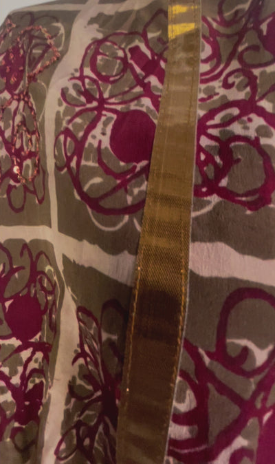 In Eastern philosophy, an Avatar is an incarnation that teaches how to evolve virtues of the past into the present. The Pure Upcycled Silk Avatar Collection is made from vintage pure silk saris, chosen and worn by women in the past to celebrate their lives.If you look very closely, you will see that the silks in this collection show some of the character of their previous incarnations through the appliqués that have been lovingly applied to bring new life to the fabric. This piece is a reminder that we are part of a collective journey to which we all add a little something.