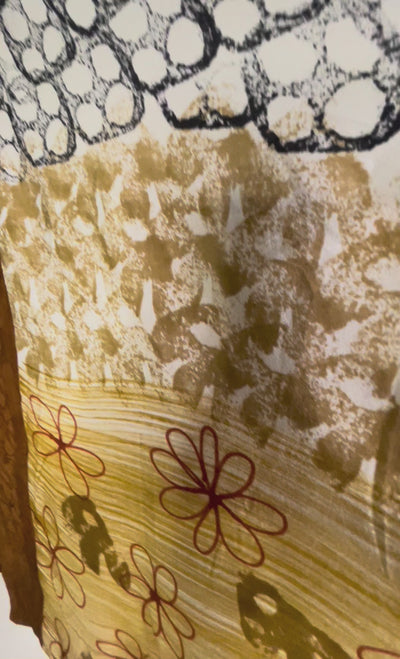 In Eastern philosophy, an Avatar is an incarnation that teaches how to evolve virtues of the past into the present. The Pure Upcycled Silk Avatar Collection is made from vintage pure silk saris, chosen and worn by women in the past to celebrate their lives.If you look very closely, you will see that the silks in this collection show some of the character of their previous incarnations through the appliqués that have been lovingly applied to bring new life to the fabric. This piece is a reminder that we are part of a collective journey to which we all add a little something.