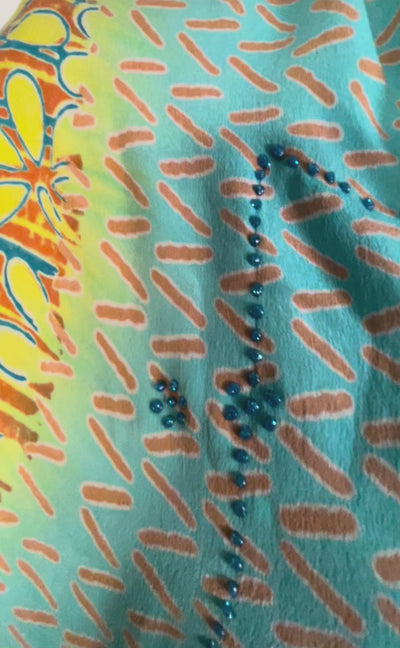 In Eastern philosophy, an Avatar is an incarnation that teaches how to evolve virtues of the past into the present. The Pure Upcycled Silk Avatar Collection is made from vintage pure silk saris, chosen and worn by women in the past to celebrate their lives.If you look very closely, you will see that the silks in this collection show some of the character of their previous incarnations through the appliqués that have been lovingly applied to bring new life to the fabric. This piece is a reminder that we are part of a collective journey to which we all add a little something.