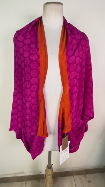 The Pure Silk Shrug is a best seller from sariKNOTsari. Available in unique colours and patterns, it makes a great accessory for covering your arms on chilly nights or adding a pop of colour to your wardrobe. This shrug is ideal for travel—it's light enough to fit into a purse and is easy to wash in a hotel sink. Silk naturally balances temperature, so you'll stay comfortable throughout the day. Also, it can be converted into a scarf! One size fits most, but please refer to the sizing tab for measurements. A great gift option!