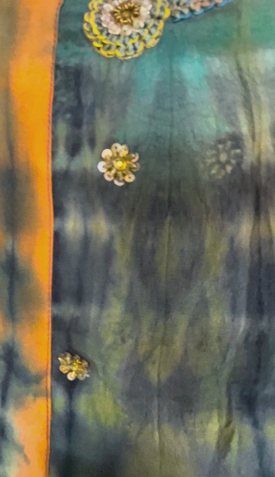 In Eastern philosophy, an Avatar is an incarnation that teaches how to evolve virtues of the past into the present. The Pure Upcycled Silk Avatar Collection is made from vintage pure silk saris, chosen and worn by women in the past to celebrate their lives. If you look very closely, you will see that the silks in this collection show some of the character of their previous incarnations through the appliqués that have been lovingly applied to bring new life to the fabric. This piece is a reminder that we are part of a collective journey to which we all add a little something.
