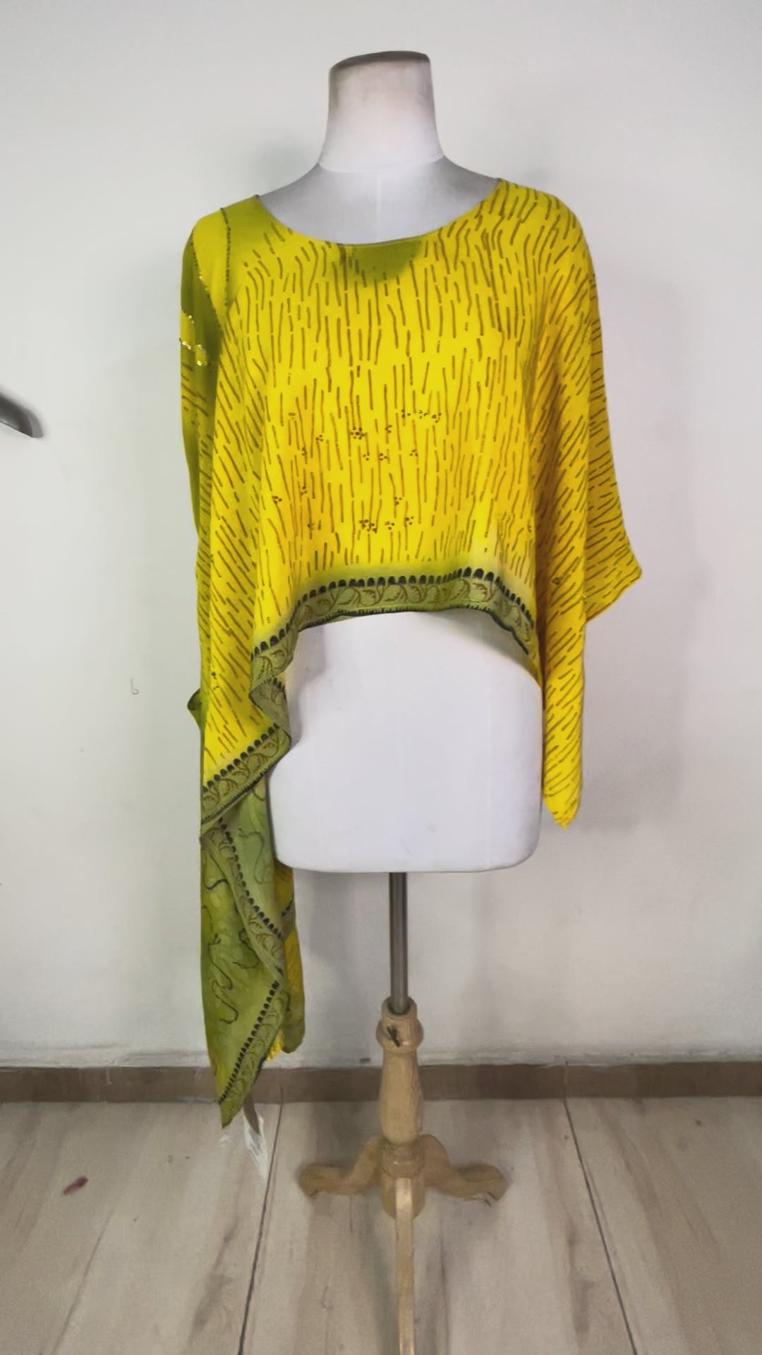 In Eastern philosophy, an Avatar is an incarnation that teaches how to evolve virtues of the past into the present. The Pure Upcycled Silk Avatar Collection is made from vintage pure silk saris, chosen and worn by women in the past to celebrate their lives. If you look very closely, you will see that the silks in this collection show some of the character of their previous incarnations through the appliqués that have been lovingly applied to bring new life to the fabric. This piece is a reminder that we are part of a collective journey to which we all add a little something.
