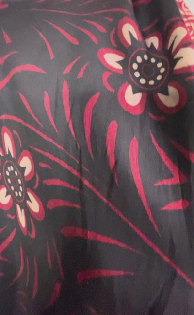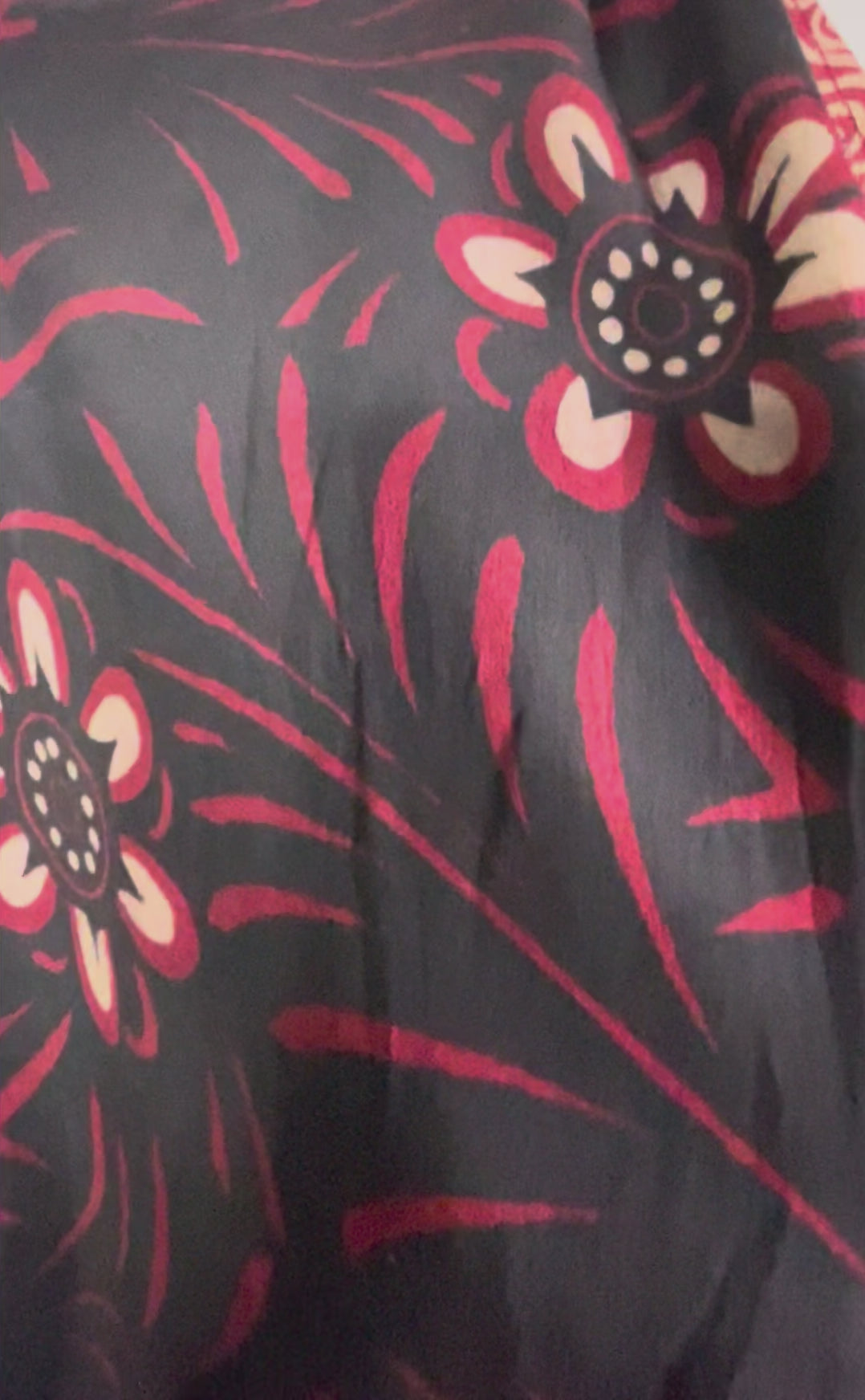 In Eastern philosophy, an Avatar is an incarnation that teaches how to evolve virtues of the past into the present. The Pure Upcycled Silk Avatar Collection is made from vintage pure silk saris, chosen and worn by women in the past to celebrate their lives.If you look very closely, you will see that the silks in this collection show some of the character of their previous incarnations through the appliqués that have been lovingly applied to bring new life to the fabric. This piece is a reminder that we are part of a collective journey to which we all add a little something.