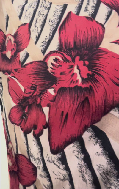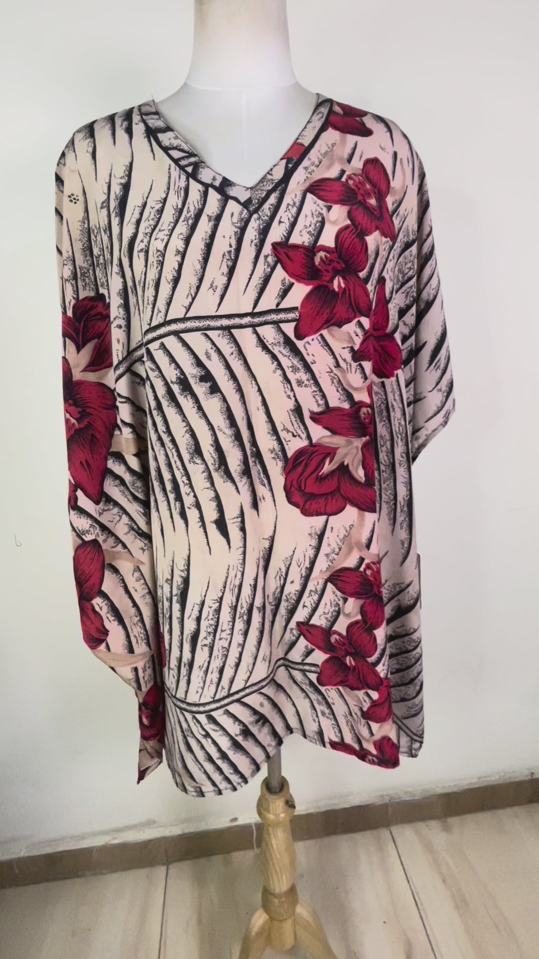 Our Tunic-Length Kaftan Tunic works in every season and works just as well at a date as at the beach. This kaftan is long enough to be worn as a beach cover-up but it can also be worn with pants or leggings in the fall and winter. Made from super-soft upcycled silk crepe saris, the fabric has a flattering drape on every figure.