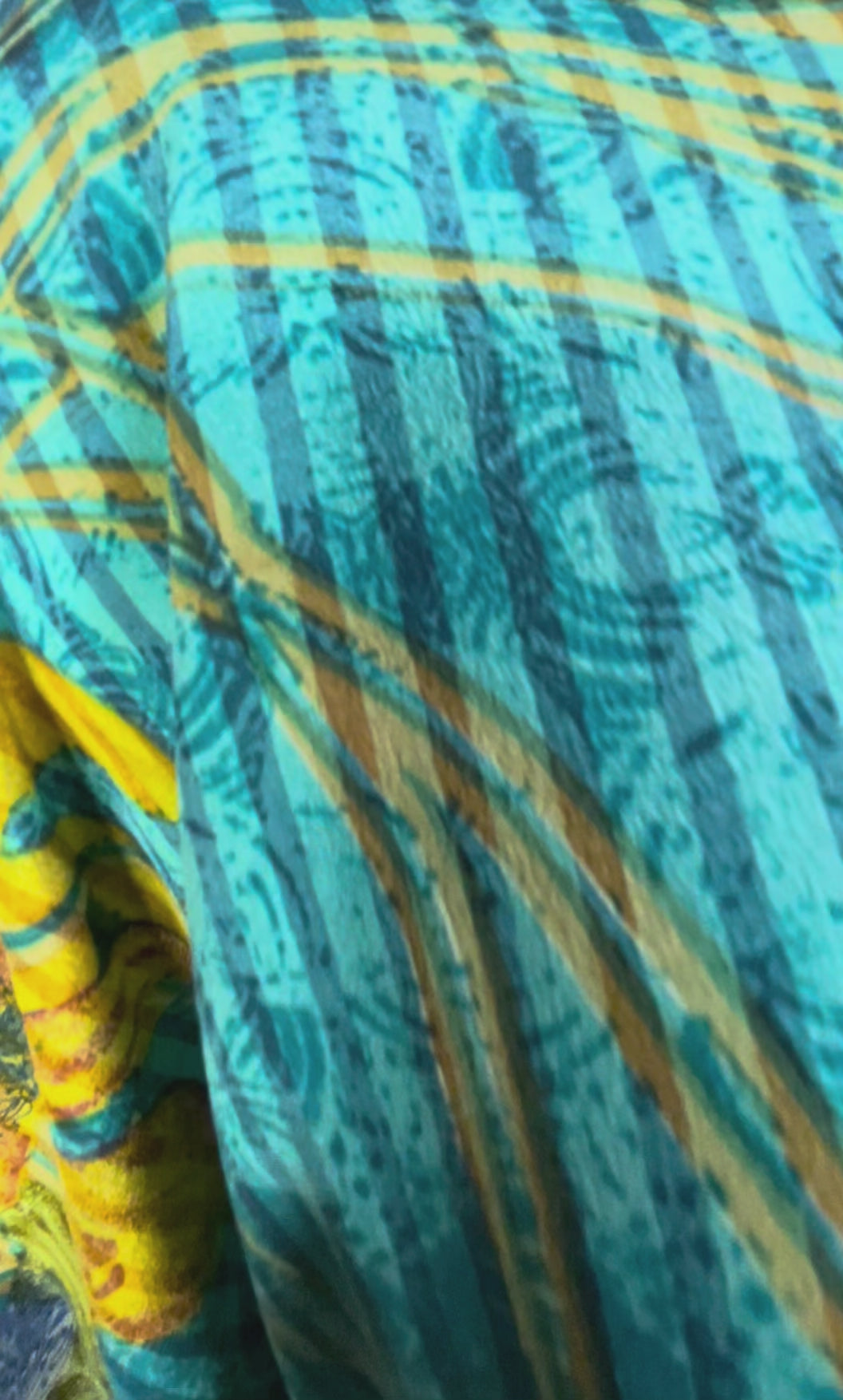 In Eastern philosophy, an Avatar is an incarnation that teaches how to evolve virtues of the past into the present. The Pure Upcycled Silk Avatar Collection is made from vintage pure silk saris, chosen and worn by women in the past to celebrate their lives.If you look very closely, you will see that the silks in this collection show some of the character of their previous incarnations through the appliqués that have been lovingly applied to bring new life to the fabric. This piece is a reminder that we are part of a collective journey to which we all add a little something.