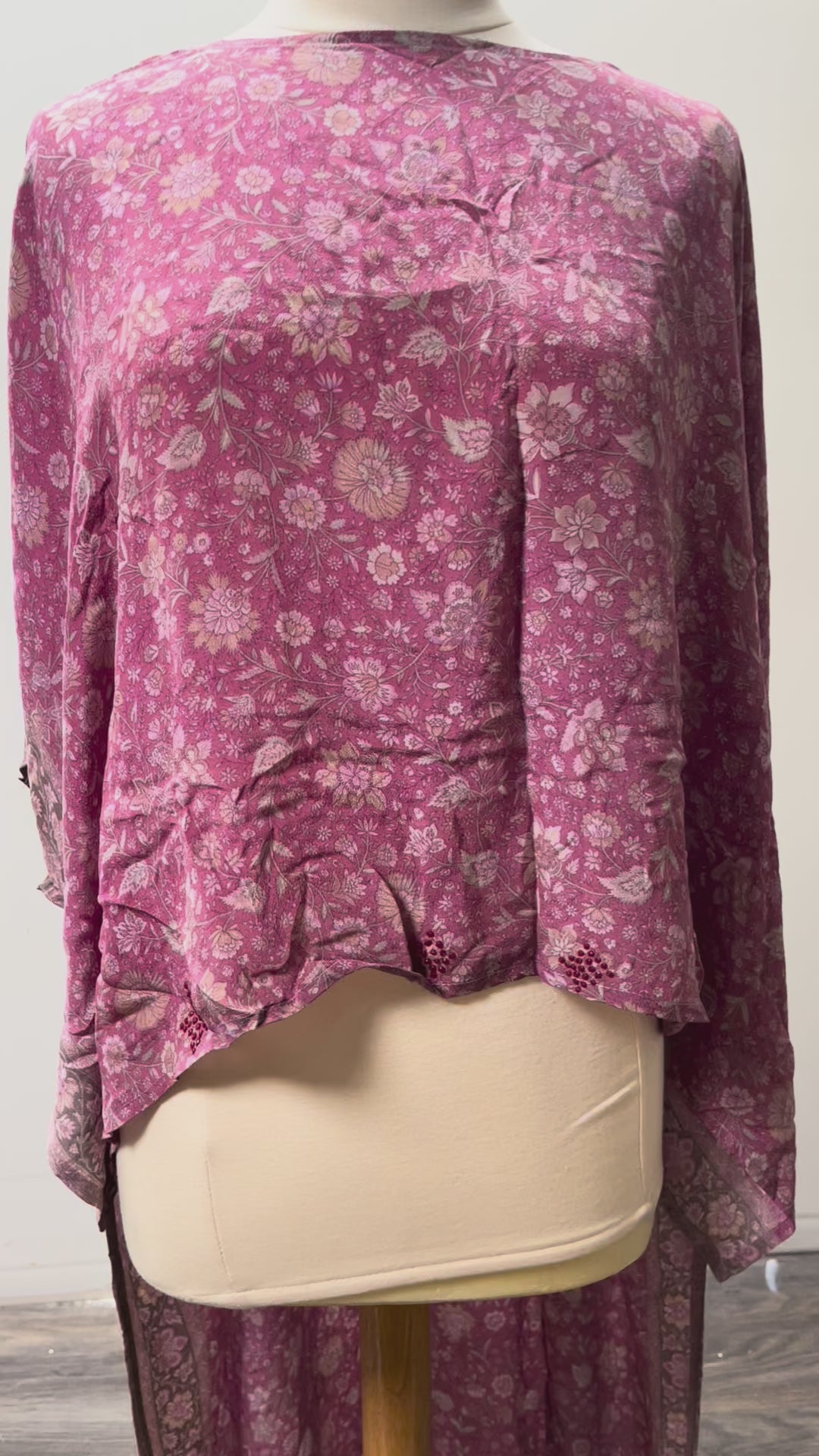 In Eastern philosophy, an Avatar is an incarnation that teaches how to evolve virtues of the past into the present. The Pure Upcycled Silk Avatar Collection is made from vintage pure silk saris, chosen and worn by women in the past to celebrate their lives. If you look very closely, you will see that the silks in this collection show some of the character of their previous incarnations through the appliqués that have been lovingly applied to bring new life to the fabric. This piece is a reminder that we are part of a collective journey to which we all add a little something.