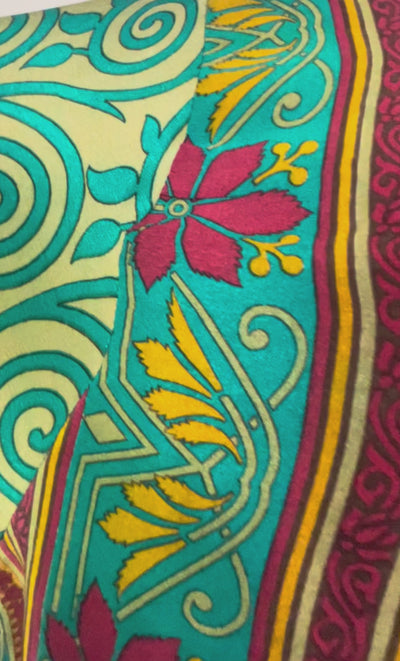 In Eastern philosophy, an Avatar is an incarnation that teaches how to evolve virtues of the past into the present. The Pure Upcycled Silk Avatar Collection is made from vintage pure silk saris, chosen and worn by women in the past to celebrate their lives.If you look very closely, you will see that the silks in this collection show some of the character of their previous incarnations through the appliqués that have been lovingly applied to bring new life to the fabric. This piece is a reminder that we are part of a collective journey to which we all add a little something.