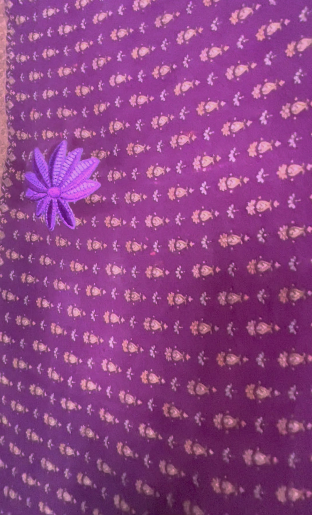 Sometimes you can see the sari-maker’s brand stamp on a piece of silk that we have transformed into another type of garment. We think the brand stamps are charming and that they don’t detract from our products, but because we also sell our clothing to boutiques around the world, we pull these “branded” products and add them to our wabi sabi or “perfectly imperfect” collection. Generally, if the piece you are interested in has a brand tag, you will be able to see its exact location in the product video.