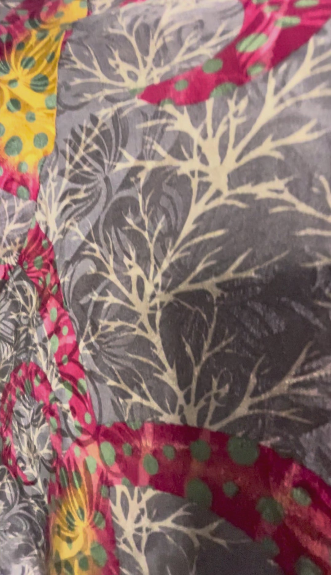 In Eastern philosophy, an Avatar is an incarnation that teaches how to evolve virtues of the past into the present. The Pure Upcycled Silk Avatar Collection is made from vintage pure silk saris, chosen and worn by women in the past to celebrate their lives.If you look very closely, you will see that the silks in this collection show some of the character of their previous incarnations through the appliqués that have been lovingly applied to bring new life to the fabric. This piece is a reminder that we are part of a collective journey to which we all add a little something.