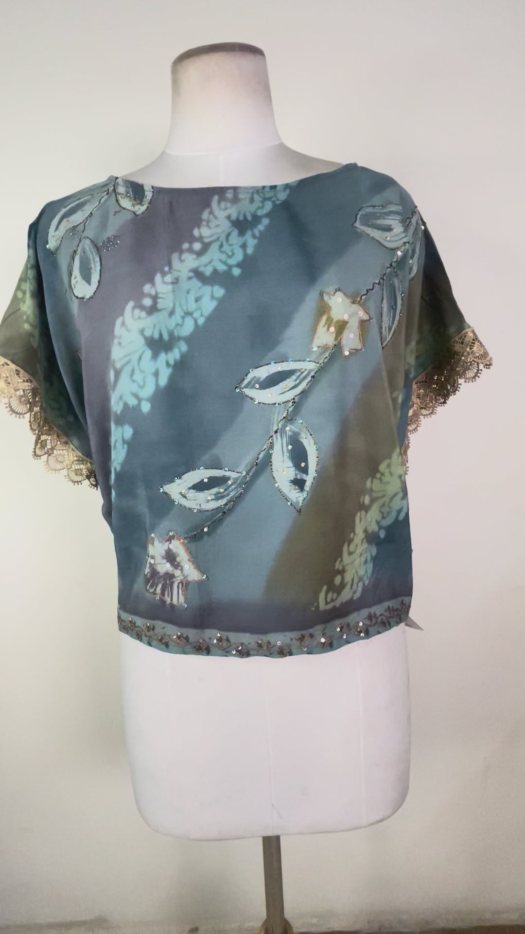 These sustainable, pure silk boxy tops are versatile and come in countless colors and prints. They look great when paired with a longer tank top and high-waisted pants, or beneath a coordinating kimono-sleeved duster, short kimono-sleeved jacket, or silk poncho. These pieces are one size, best fitting sizes 2-12, but please consult the product description for exact measurements.