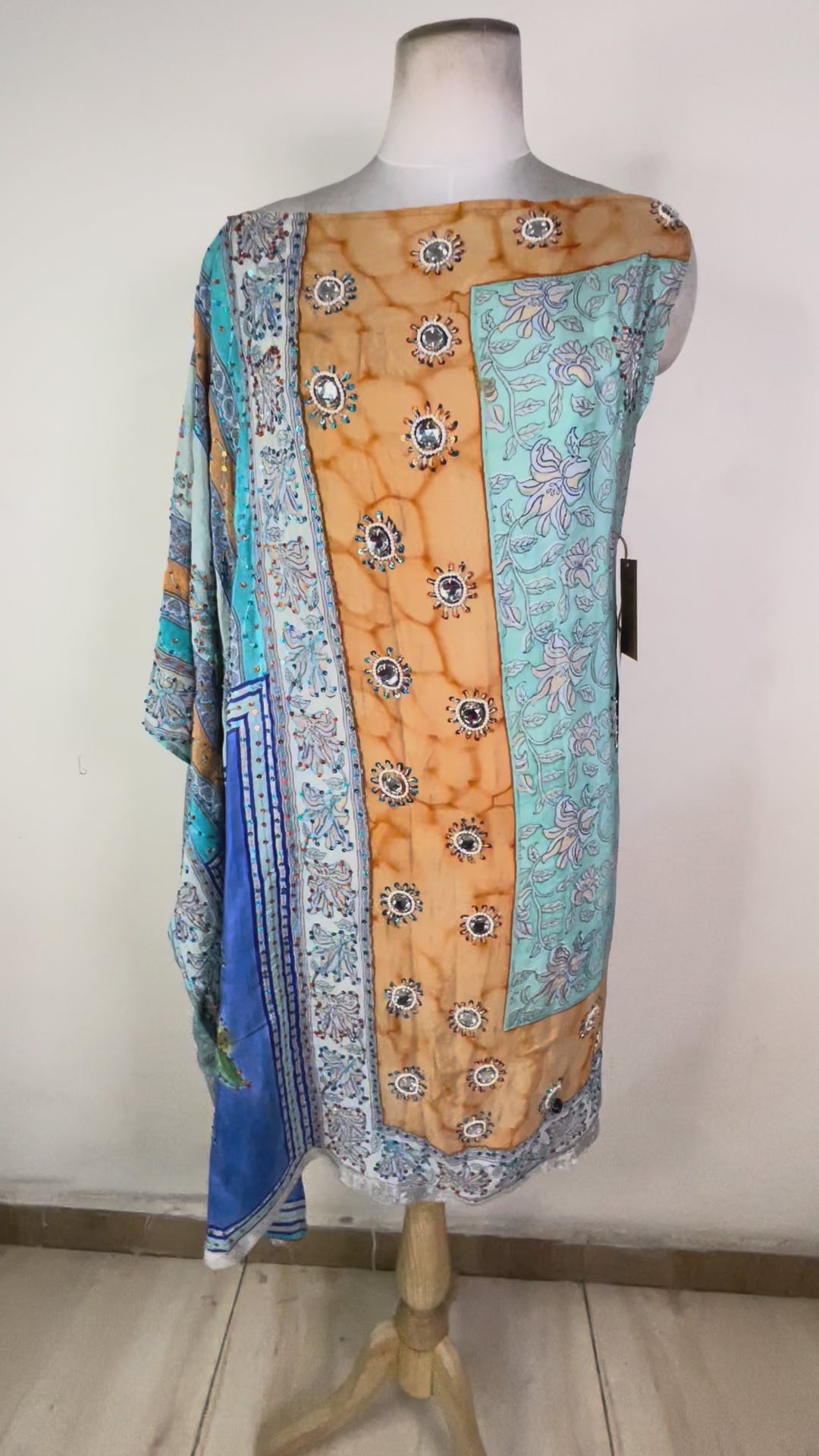 In order to extend the life of our gorgeous silks, we use small patches to camouflage the unavoidable fabric issues that arise from using upcycled fabrics. Most of our regularly-priced pieces will have some patching, but if there is more patching than we think is reasonable or if the patching is combined with another fabric issue, we will add the piece to our wabi sabi collection. Patching can be mild, moderate or significant. Please see the images and video attached to the wabi sabi piece that interests you for patches on that particular piece.
