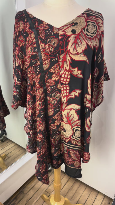 In order to extend the life of our gorgeous silks, we use small patches to camouflage the unavoidable fabric issues that arise from using upcycled fabrics. Most of our regularly-priced pieces will have some patching, but if there is more patching than we think is reasonable or if the patching is combined with another fabric issue, we will add the piece to our wabi sabi collection. Patching can be mild, moderate or significant. Please see the images and video attached to the wabi sabi piece that interests you for patches on that particular piece.