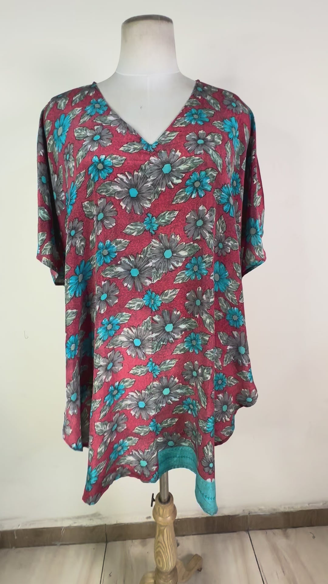 This final iteration of our tapered tunic top is designed for all body types, offering light, drapey coverage of the arms and shoulders. Side slits create a slightly tapered front, and the reversible design offers maximum versatility with a scoop neck on one side and a v-neck on the other - particularly flattering for apple-shaped figures.