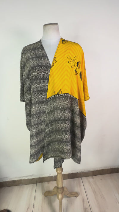 In order to extend the life of our gorgeous silks, we use small patches to camouflage the unavoidable fabric issues that arise from using upcycled fabrics. Most of our regularly-priced pieces will have some patching, but if there is more patching than we think is reasonable or if the patching is combined with another fabric issue, we will add the piece to our wabi sabi collection. Patching can be mild, moderate or significant. Please see the images and video attached to the wabi sabi piece that interests you for patches on that particular piece.