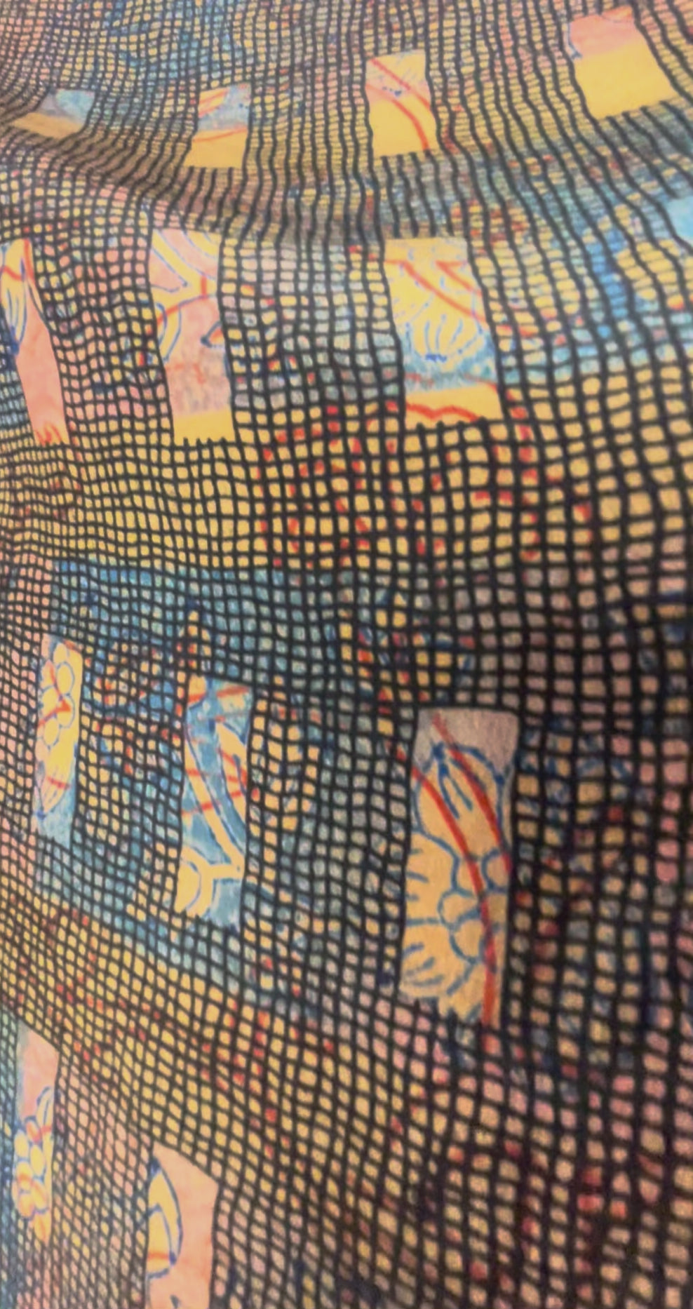 - Place the silk fabric with the area to be patched in a single layer on the white cotton.