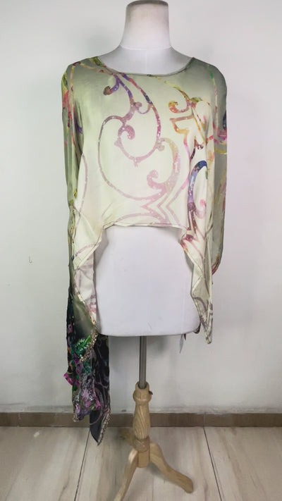 In Eastern philosophy, an Avatar is an incarnation that teaches how to evolve virtues of the past into the present. The Pure Upcycled Silk Avatar Collection is made from vintage pure silk saris, chosen and worn by women in the past to celebrate their lives. If you look very closely, you will see that the silks in this collection show some of the character of their previous incarnations through the appliqués that have been lovingly applied to bring new life to the fabric. This piece is a reminder that we are part of a collective journey to which we all add a little something.