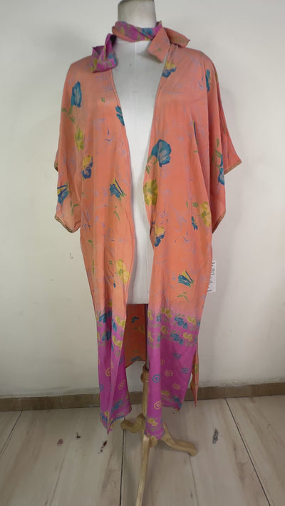 PRC8204 Wabi Sabi Pure Silk Kimono Sleeved Duster with Belt