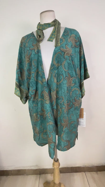PRC8226 Wabi Sabi Pure Silk Kimono-Sleeved Jacket with Belt
