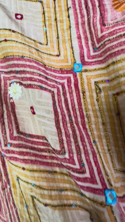 In Eastern philosophy, an Avatar is an incarnation that teaches how to evolve virtues of the past into the present. The Pure Upcycled Silk Avatar Collection is made from vintage pure silk saris, chosen and worn by women in the past to celebrate their lives.If you look very closely, you will see that the silks in this collection show some of the character of their previous incarnations through the appliqués that have been lovingly applied to bring new life to the fabric. This piece is a reminder that we are part of a collective journey to which we all add a little something.