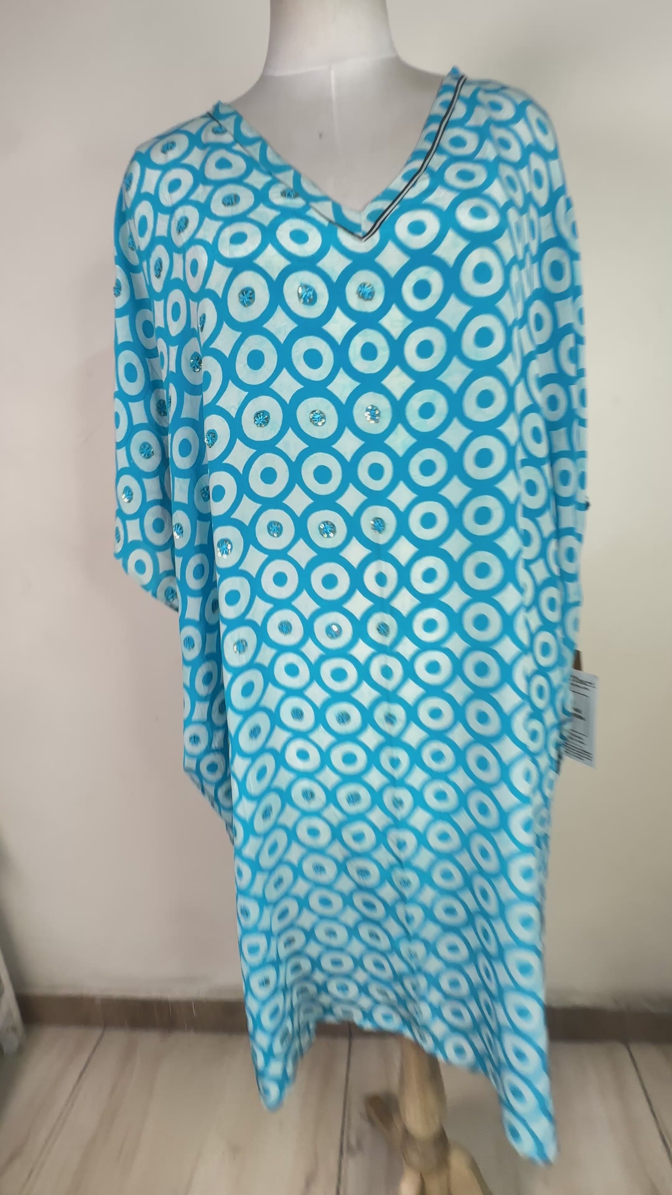 This midi-length kaftan brings style and sophistication to any occasion, from weddings to a beach day. Crafted from luxurious upcycled silk saris, the fabric has a beautiful flowing shape that flatters all body types. This kaftan dress can be worn as a single piece, or styled with pants for a fresh look. It's a one-size-fits-most item, so be sure to check the sizing chart for detailed measurements.