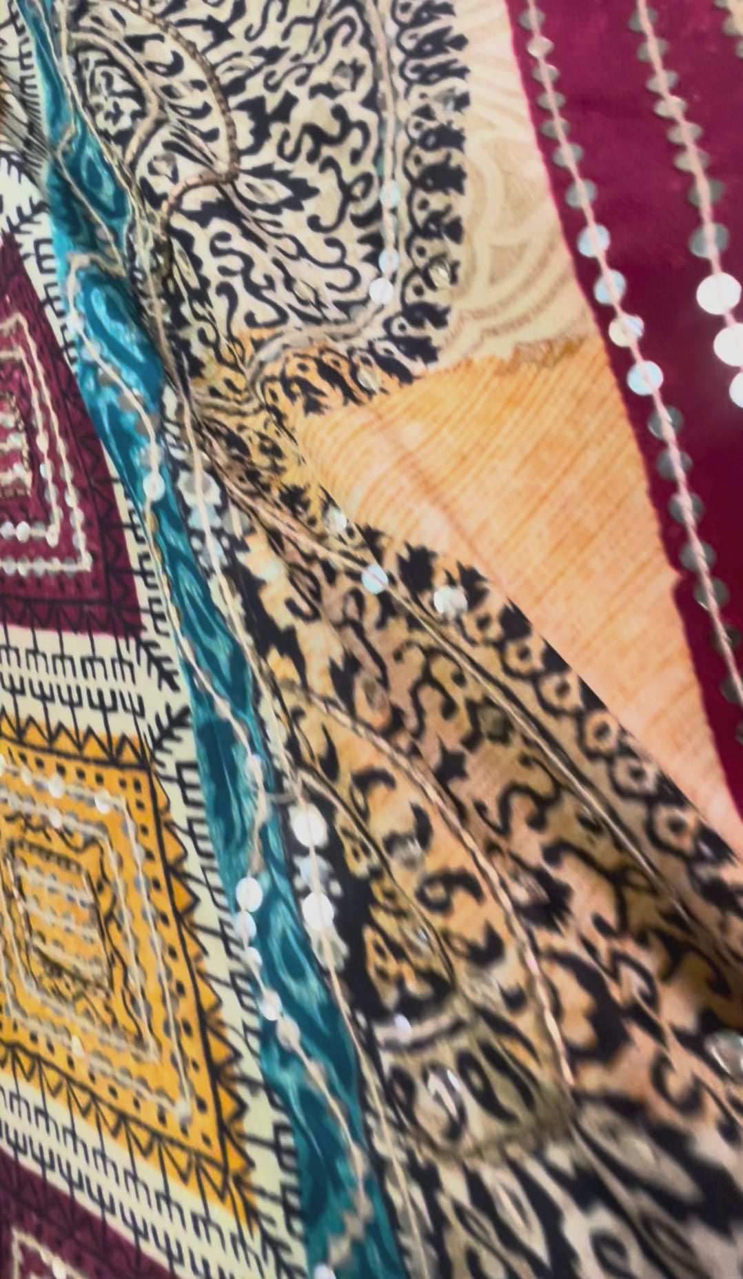 In Eastern philosophy, an Avatar is an incarnation that teaches how to evolve virtues of the past into the present. The Pure Upcycled Silk Avatar Collection is made from vintage pure silk saris, chosen and worn by women in the past to celebrate their lives. If you look very closely, you will see that the silks in this collection show some of the character of their previous incarnations through the appliqués that have been lovingly applied to bring new life to the fabric. This piece is a reminder that we are part of a collective journey to which we all add a little something.