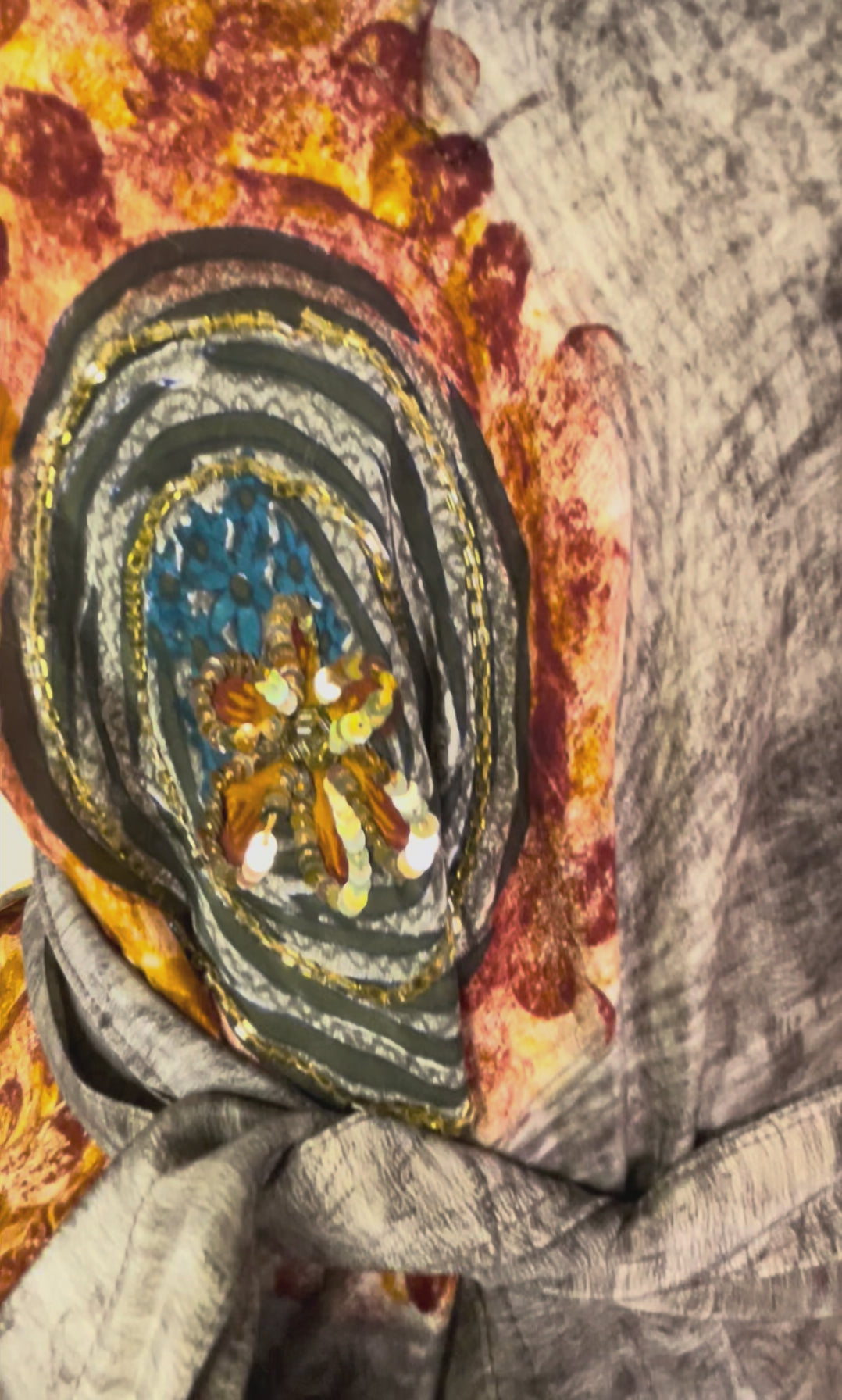 In Eastern philosophy, an Avatar is an incarnation that teaches how to evolve virtues of the past into the present. The Pure Upcycled Silk Avatar Collection is made from vintage pure silk saris, chosen and worn by women in the past to celebrate their lives. If you look very closely, you will see that the silks in this collection show some of the character of their previous incarnations through the appliqués that have been lovingly applied to bring new life to the fabric. This piece is a reminder that we are part of a collective journey to which we all add a little something.