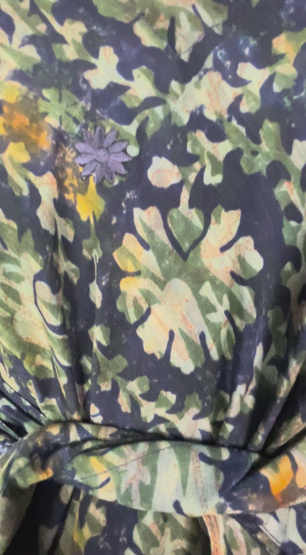 In order to extend the life of our gorgeous silks, we use small patches to camouflage the unavoidable fabric issues that arise from using upcycled fabrics. Most of our regularly-priced pieces will have some patching, but if there is more patching than we think is reasonable or if the patching is combined with another fabric issue, we will add the piece to our wabi sabi collection. Patching can be mild, moderate or significant. Please see the images and video attached to the wabi sabi piece that interests you for patches on that particular piece.