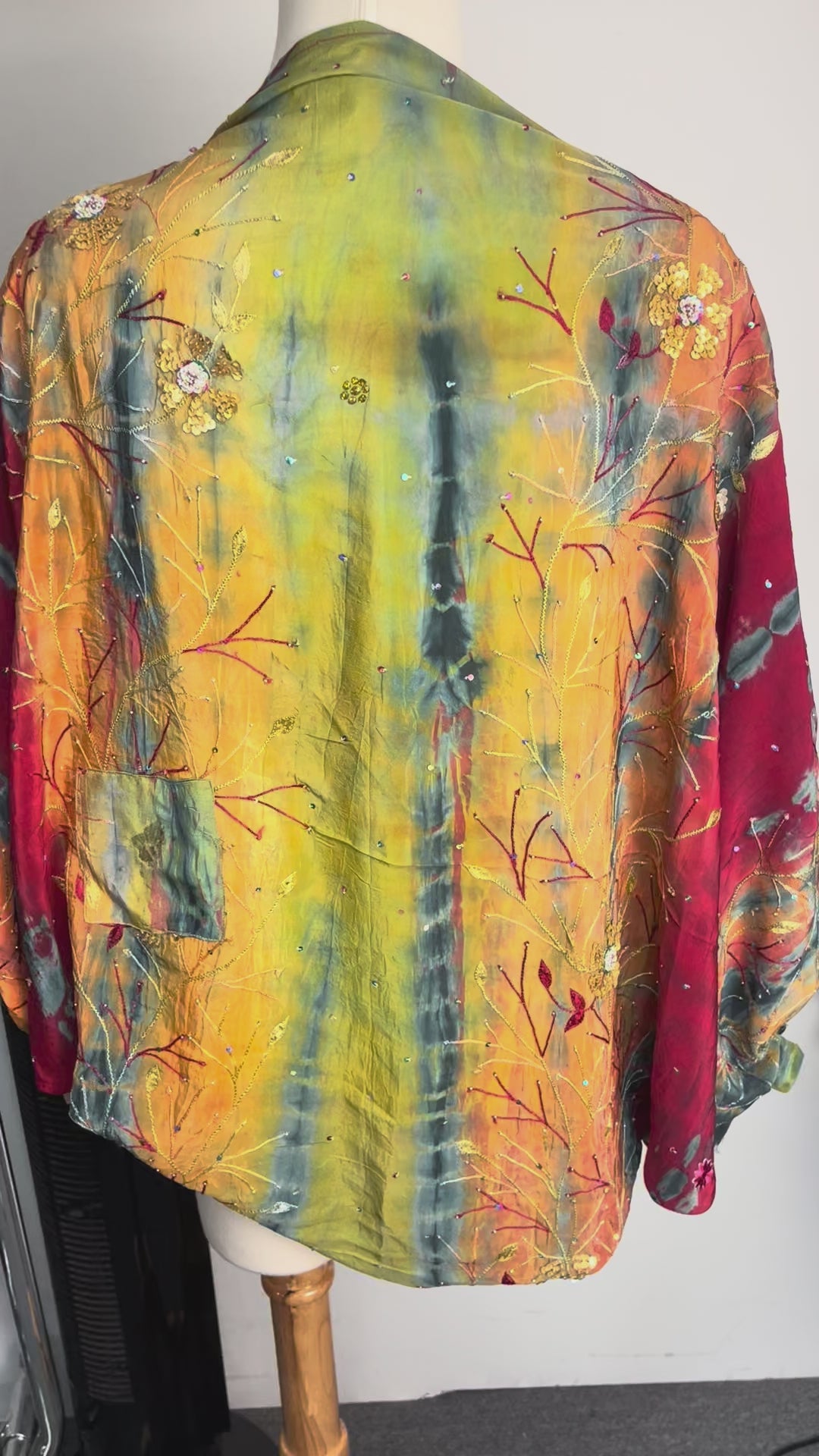 In order to extend the life of our gorgeous silks, we use small patches to camouflage the unavoidable fabric issues that arise from using upcycled fabrics. Most of our regularly-priced pieces will have some patching, but if there is more patching than we think is reasonable or if the patching is combined with another fabric issue, we will add the piece to our wabi sabi collection. Patching can be mild, moderate or significant. Please see the images and video attached to the wabi sabi piece that interests you for patches on that particular piece.