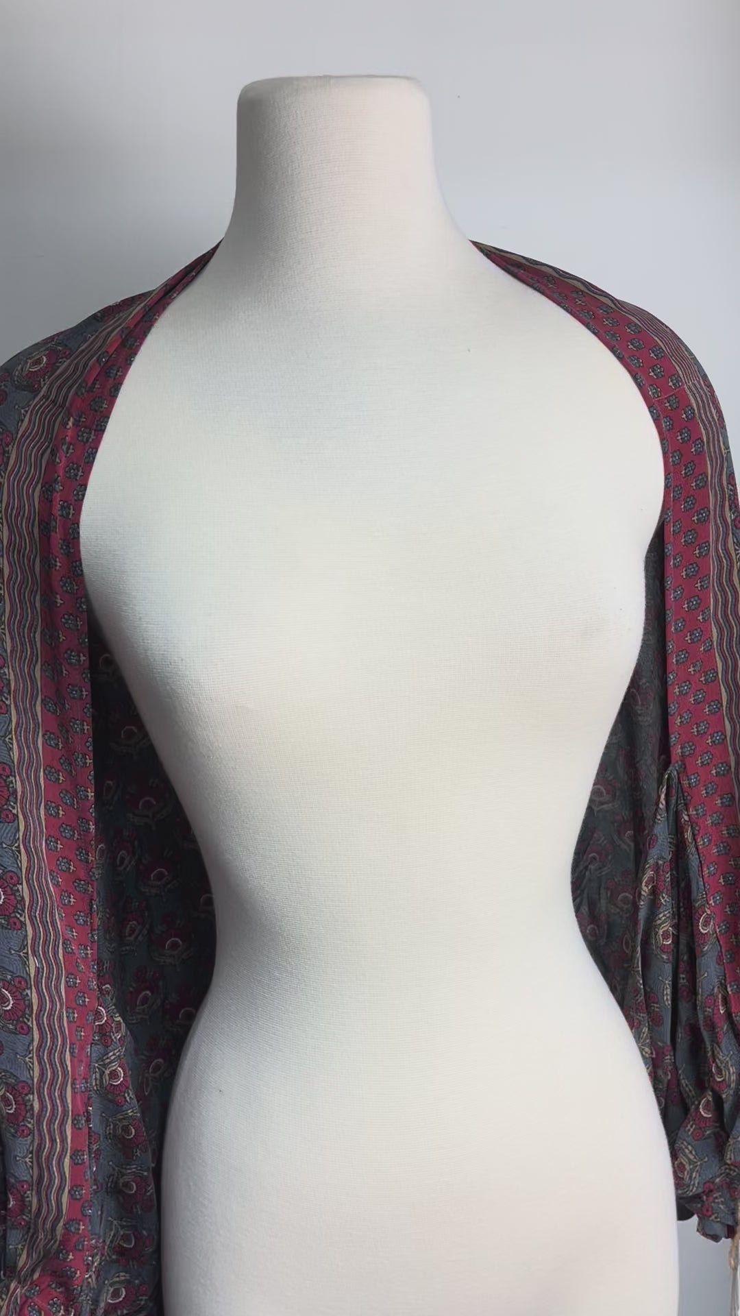 Introducing our exquisite Pure Silk Bolero, a one-of-a-kind accessory designed to elevate your style and provide ultimate convenience. Crafted from luxurious upcycled pure silk saris, this bolero is perfect for covering your arms and shoulders, adding a touch of elegance to any outfit.