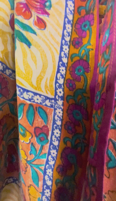 In Eastern philosophy, an Avatar is an incarnation that teaches how to evolve virtues of the past into the present. The Pure Upcycled Silk Avatar Collection is made from vintage pure silk saris, chosen and worn by women in the past to celebrate their lives.If you look very closely, you will see that the silks in this collection show some of the character of their previous incarnations through the appliqués that have been lovingly applied to bring new life to the fabric. This piece is a reminder that we are part of a collective journey to which we all add a little something.