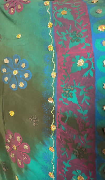 In Eastern philosophy, an Avatar is an incarnation that teaches how to evolve virtues of the past into the present. The Pure Upcycled Silk Avatar Collection is made from vintage pure silk saris, chosen and worn by women in the past to celebrate their lives. If you look very closely, you will see that the silks in this collection show some of the character of their previous incarnations through the appliqués that have been lovingly applied to bring new life to the fabric. This piece is a reminder that we are part of a collective journey to which we all add a little something.