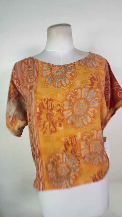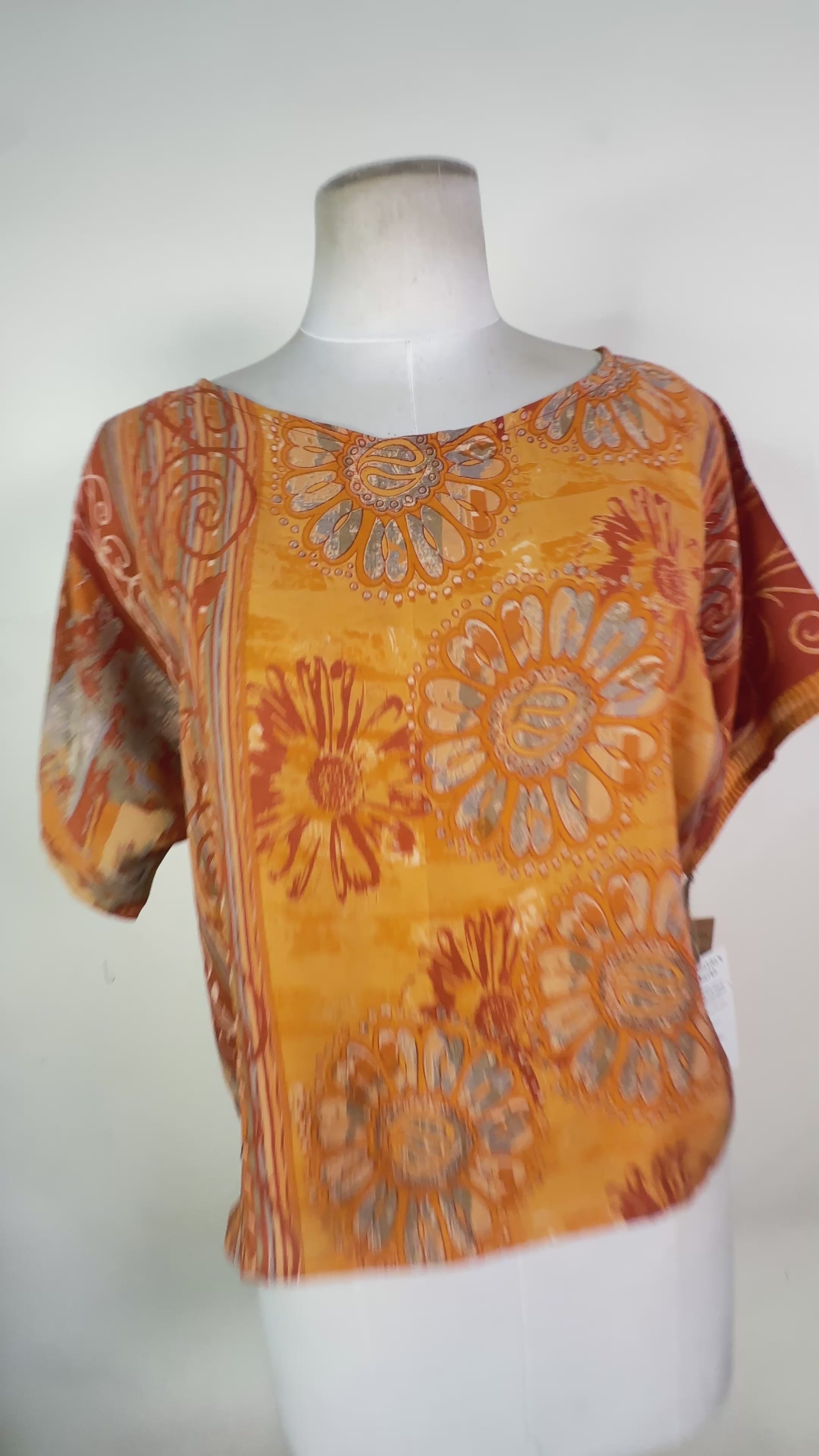 These sustainable, pure silk boxy tops are versatile and come in countless colors and prints. They look great when paired with a longer tank top and high-waisted pants, or beneath a coordinating kimono-sleeved duster, short kimono-sleeved jacket, or silk poncho. These pieces are one size, best fitting sizes 2-12, but please consult the product description for exact measurements.