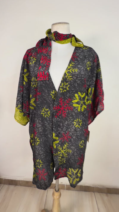PRC8488 Wabi Sabi Pure Silk Kimono-Sleeved Jacket with Belt