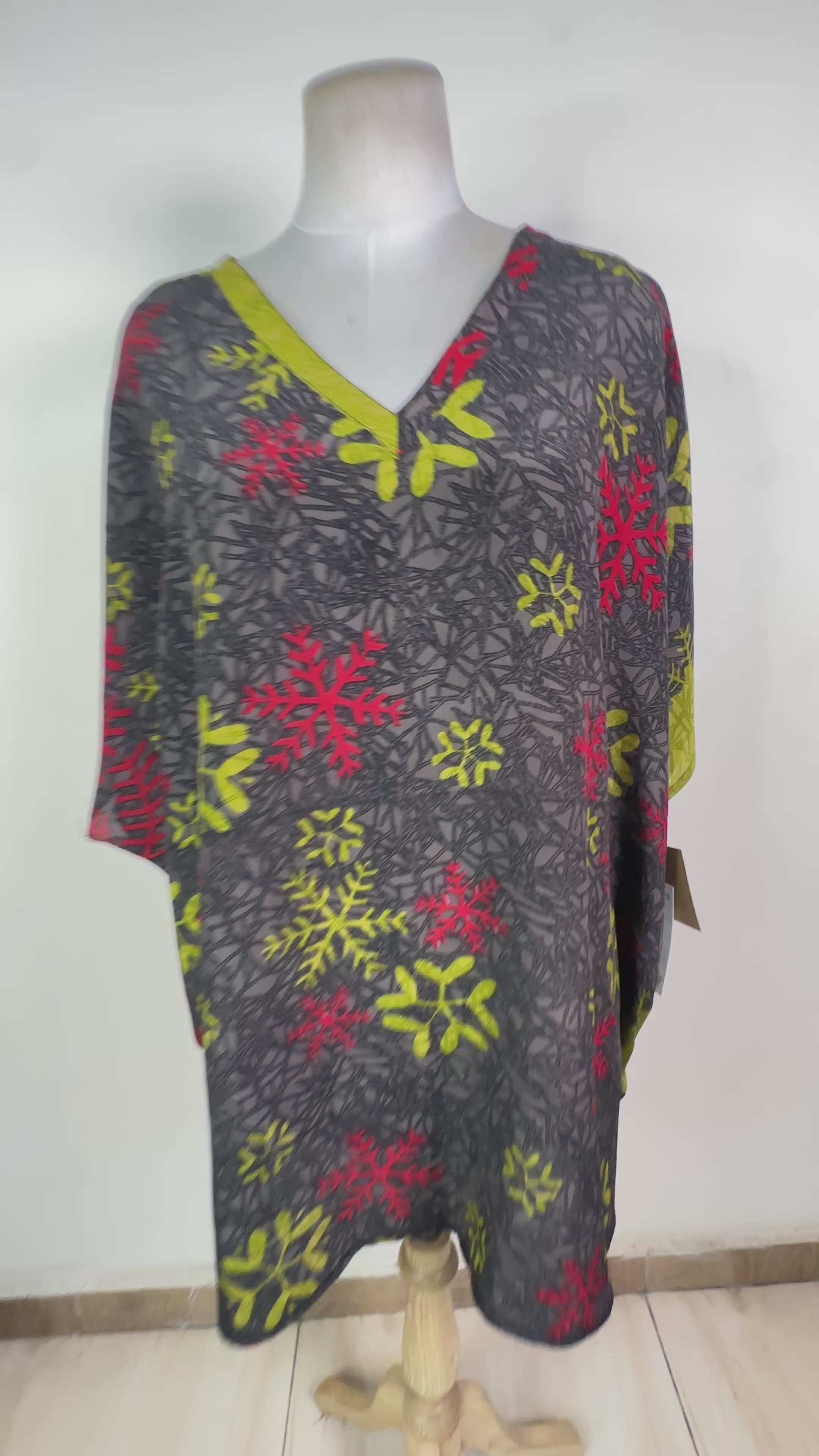 Our Tunic-Length Kaftan Tunic works in every season and works just as well at a date as at the beach. This kaftan is long enough to be worn as a beach cover-up but it can also be worn with pants or leggings in the fall and winter. Made from super-soft upcycled silk crepe saris, the fabric has a flattering drape on every figure.
