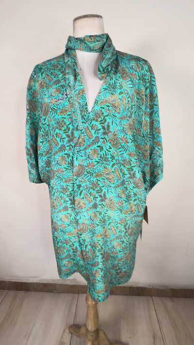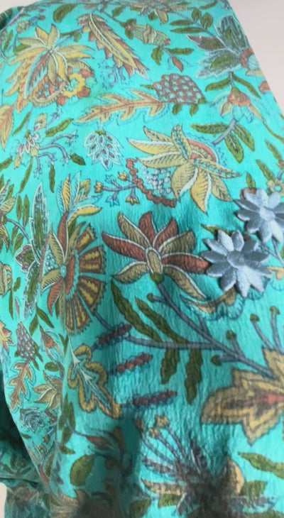 In Eastern philosophy, an Avatar is an incarnation that teaches how to evolve virtues of the past into the present. The Pure Upcycled Silk Avatar Collection is made from vintage pure silk saris, chosen and worn by women in the past to celebrate their lives. If you look very closely, you will see that the silks in this collection show some of the character of their previous incarnations through the appliqués that have been lovingly applied to bring new life to the fabric. This piece is a reminder that we are part of a collective journey to which we all add a little something.