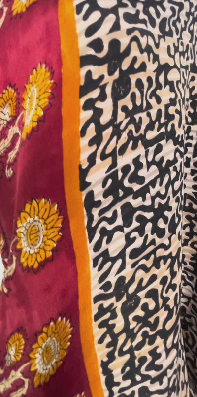 In Eastern philosophy, an Avatar is an incarnation that teaches how to evolve virtues of the past into the present. The Pure Upcycled Silk Avatar Collection is made from vintage pure silk saris, chosen and worn by women in the past to celebrate their lives.If you look very closely, you will see that the silks in this collection show some of the character of their previous incarnations through the appliqués that have been lovingly applied to bring new life to the fabric. This piece is a reminder that we are part of a collective journey to which we all add a little something.