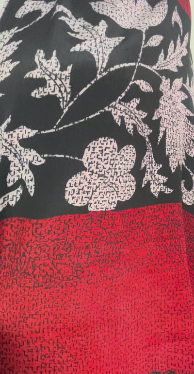 In Eastern philosophy, an Avatar is an incarnation that teaches how to evolve virtues of the past into the present. The Pure Upcycled Silk Avatar Collection is made from vintage pure silk saris, chosen and worn by women in the past to celebrate their lives.If you look very closely, you will see that the silks in this collection show some of the character of their previous incarnations through the appliqués that have been lovingly applied to bring new life to the fabric. This piece is a reminder that we are part of a collective journey to which we all add a little something.