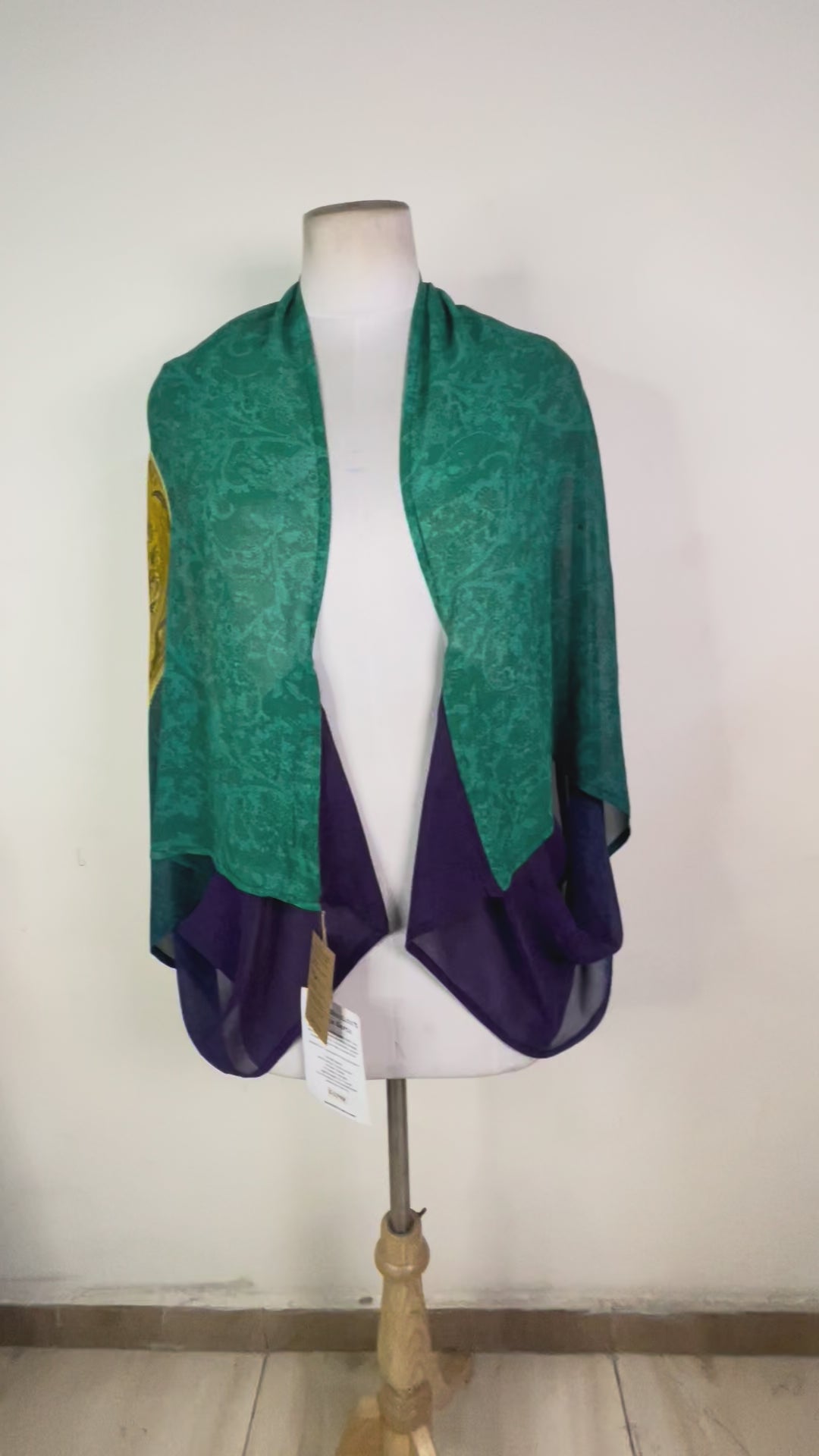 The Pure Silk Shrug is a best seller from sariKNOTsari. Available in unique colours and patterns, it makes a great accessory for covering your arms on chilly nights or adding a pop of colour to your wardrobe. This shrug is ideal for travel—it's light enough to fit into a purse and is easy to wash in a hotel sink. Silk naturally balances temperature, so you'll stay comfortable throughout the day. Also, it can be converted into a scarf! One size fits most, but please refer to the sizing tab for measurements. A great gift option!