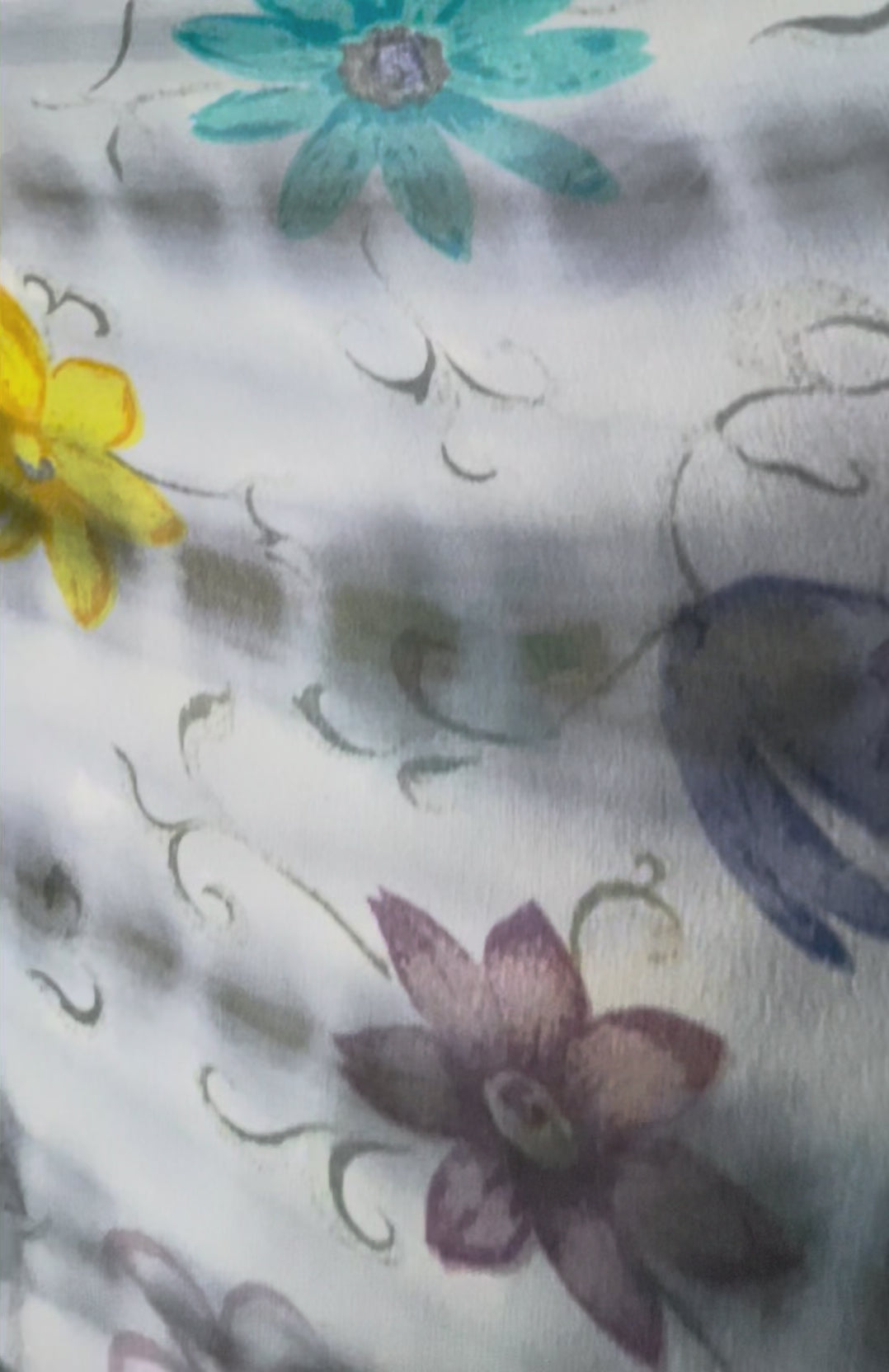 - Place the silk fabric with the area to be patched in a single layer on the white cotton.
