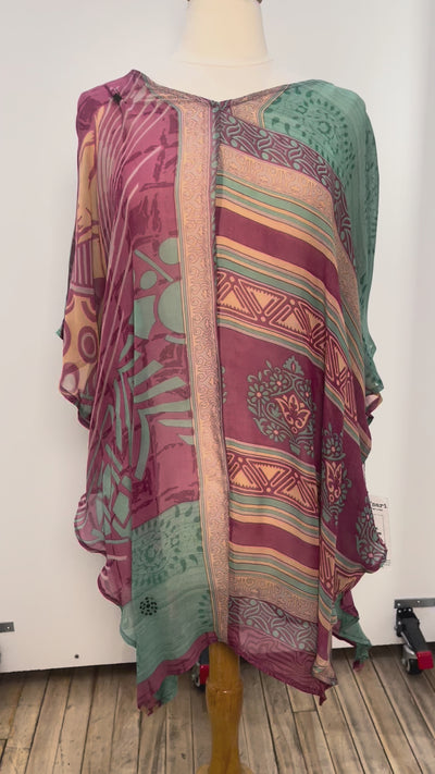 In Eastern philosophy, an Avatar is an incarnation that teaches how to evolve virtues of the past into the present. The Pure Upcycled Silk Avatar Collection is made from vintage pure silk saris, chosen and worn by women in the past to celebrate their lives. If you look very closely, you will see that the silks in this collection show some of the character of their previous incarnations through the appliqués that have been lovingly applied to bring new life to the fabric. This piece is a reminder that we are part of a collective journey to which we all add a little something.