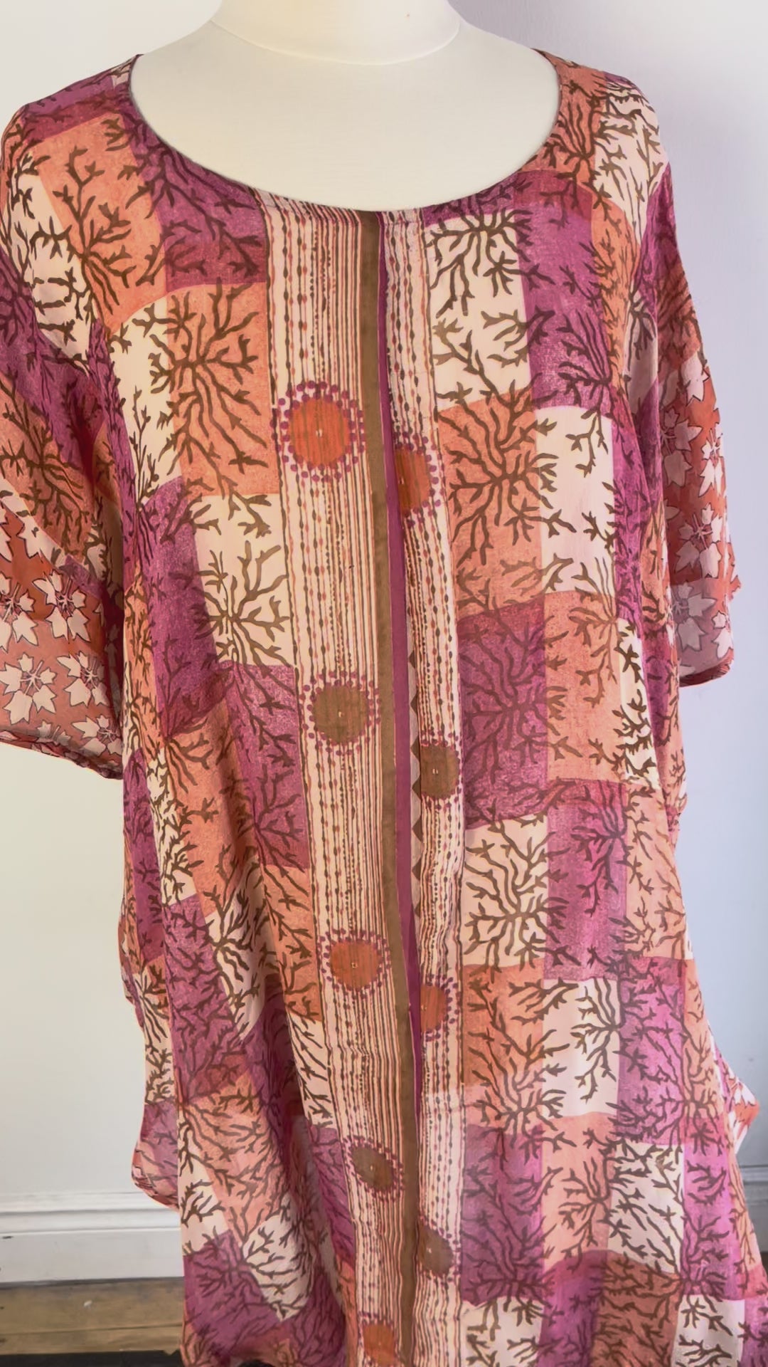 In order to extend the life of our gorgeous silks, we use small patches to camouflage the unavoidable fabric issues that arise from using upcycled fabrics. Most of our regularly-priced pieces will have some patching, but if there is more patching than we think is reasonable or if the patching is combined with another fabric issue, we will add the piece to our wabi sabi collection. Patching can be mild, moderate or significant. Please see the images and video attached to the wabi sabi piece that interests you for patches on that particular piece.