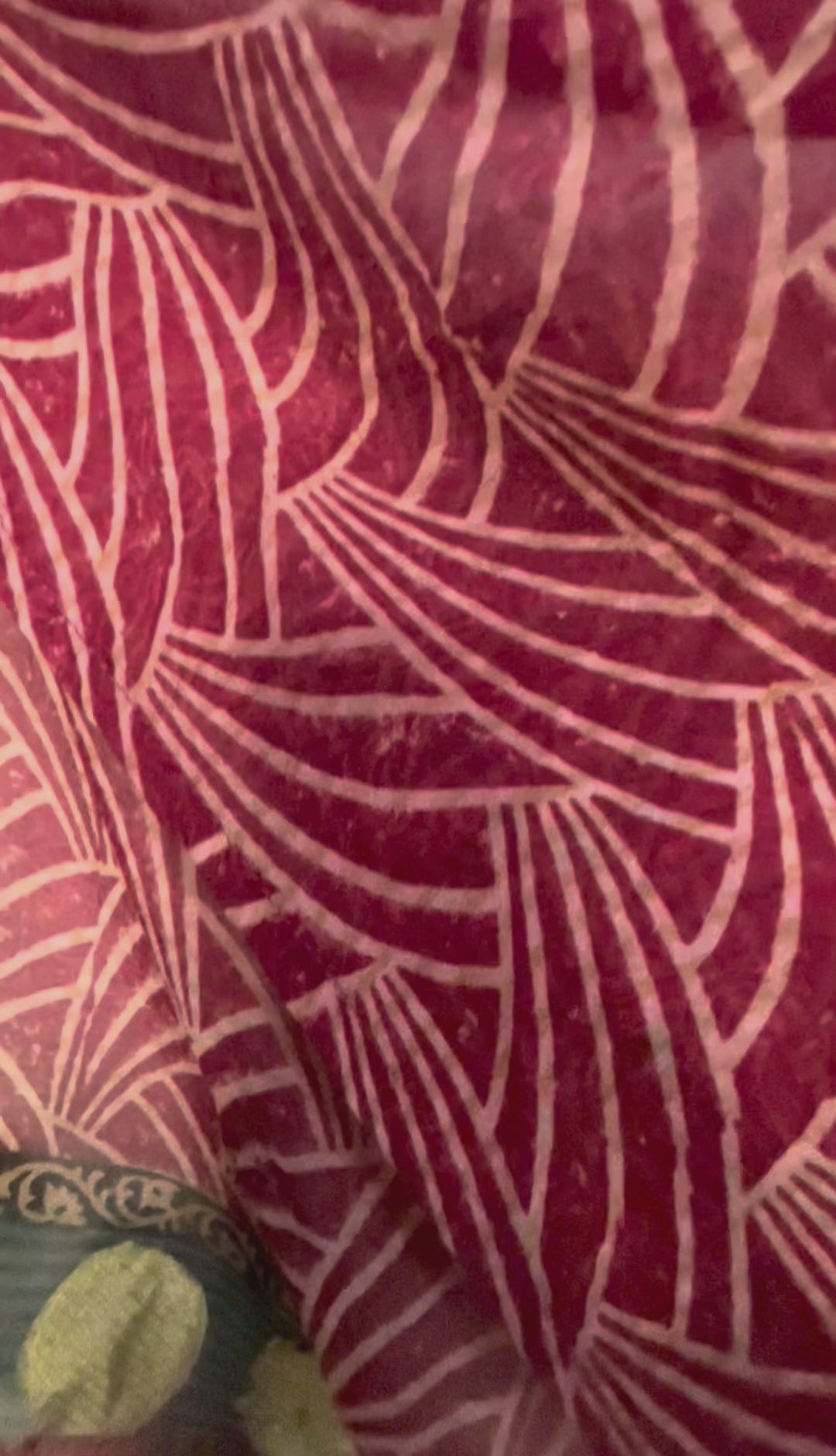 Sometimes you can see the sari-maker’s brand stamp on a piece of silk that we have transformed into another type of garment. We think the brand stamps are charming and that they don’t detract from our products, but because we also sell our clothing to boutiques around the world, we pull these “branded” products and add them to our wabi sabi or “perfectly imperfect” collection. Generally, if the piece you are interested in has a brand tag, you will be able to see its exact location in the product video.