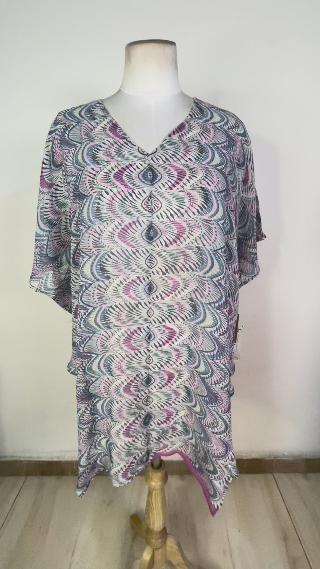 This final iteration of our tapered tunic top is designed for all body types, offering light, drapey coverage of the arms and shoulders. Side slits create a slightly tapered front, and the reversible design offers maximum versatility with a scoop neck on one side and a v-neck on the other - particularly flattering for apple-shaped figures.