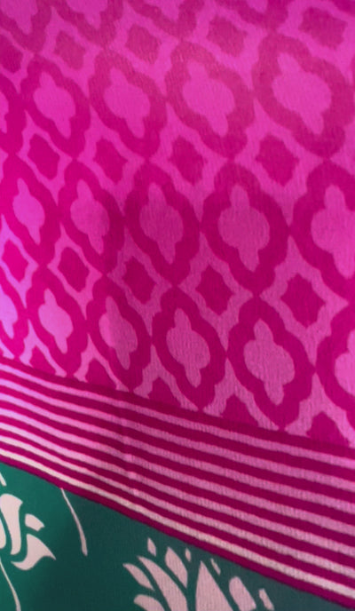 In Eastern philosophy, an Avatar is an incarnation that teaches how to evolve virtues of the past into the present. The Pure Upcycled Silk Avatar Collection is made from vintage pure silk saris, chosen and worn by women in the past to celebrate their lives.If you look very closely, you will see that the silks in this collection show some of the character of their previous incarnations through the appliqués that have been lovingly applied to bring new life to the fabric. This piece is a reminder that we are part of a collective journey to which we all add a little something.