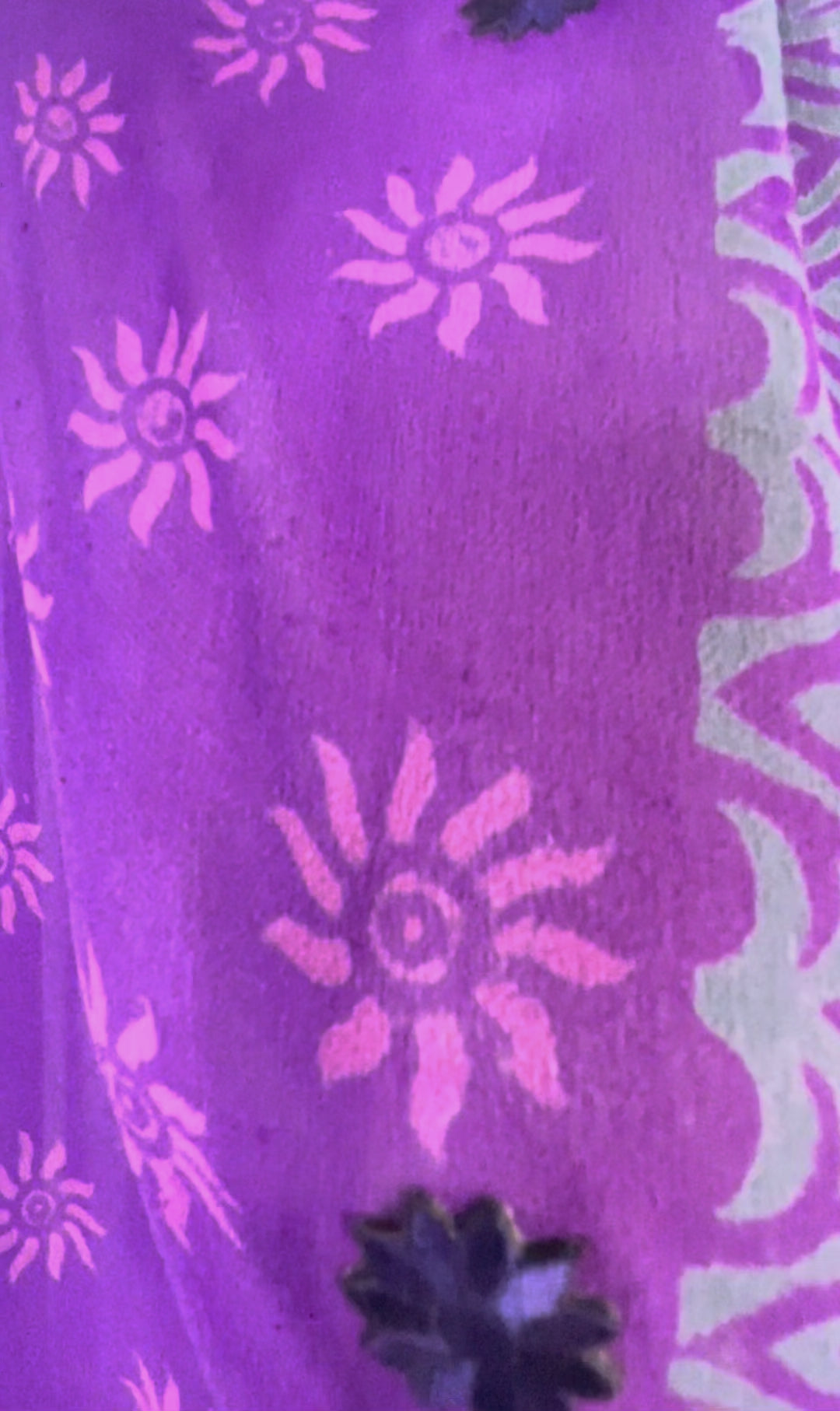 In Eastern philosophy, an Avatar is an incarnation that teaches how to evolve virtues of the past into the present. The Pure Upcycled Silk Avatar Collection is made from vintage pure silk saris, chosen and worn by women in the past to celebrate their lives. If you look very closely, you will see that the silks in this collection show some of the character of their previous incarnations through the appliqués that have been lovingly applied to bring new life to the fabric. This piece is a reminder that we are part of a collective journey to which we all add a little something.