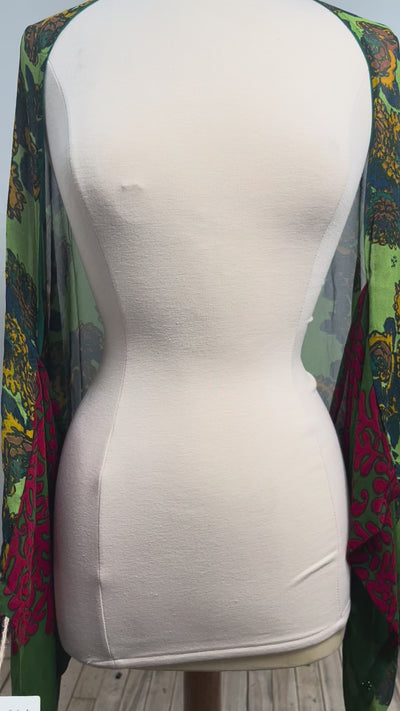 In order to extend the life of our gorgeous silks, we use small patches to camouflage the unavoidable fabric issues that arise from using upcycled fabrics. Most of our regularly-priced pieces will have some patching, but if there is more patching than we think is reasonable or if the patching is combined with another fabric issue, we will add the piece to our wabi sabi collection. Patching can be mild, moderate or significant. Please see the images and video attached to the wabi sabi piece that interests you for patches on that particular piece.