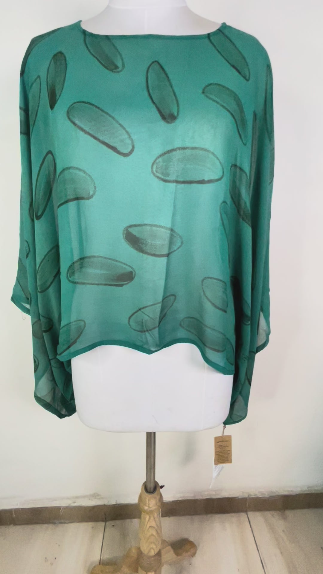 PRG7364 Sheer Wabi Sabi Pure Silk Kimono-Sleeved Top